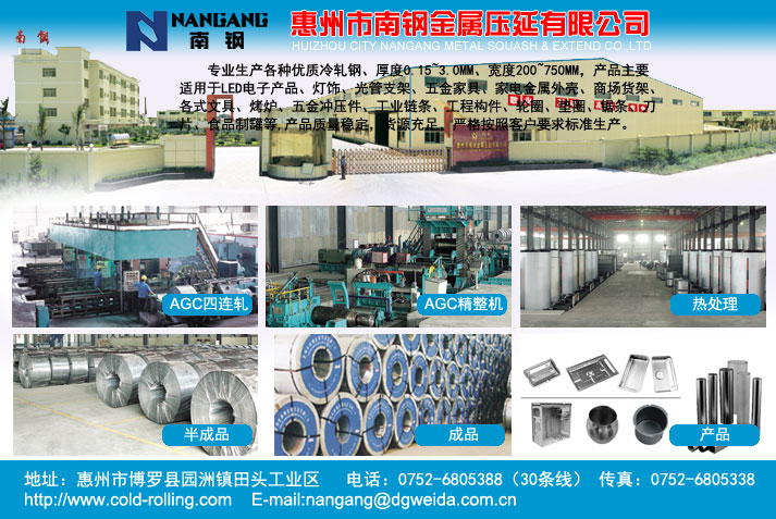專業(yè)生產(chǎn)各種優(yōu)質(zhì)冷軋鋼、厚度0.15~3.0MM、寬度200~750MM,產(chǎn)品主要適用于LED電子產(chǎn)品、燈飾、光管支架、五金家具、家電金屬外殼、商場貨架、各式文具、烤爐、五金沖壓件、工業(yè)鏈條、工程構(gòu)件、輪圈、墊圈、鋸條、刀片、食品制罐等,產(chǎn)品質(zhì)量穩(wěn)定,貨源充足,嚴(yán)格按照客戶要求標(biāo)準(zhǔn)生產(chǎn)。