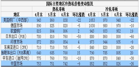 二是近期國際市場價格特別是扁平材下滑仍比較明顯,進(jìn)一步削弱我國鋼材產(chǎn)品出口競爭力。5-6月國際主要地區(qū)冷熱軋價格持續(xù)下跌,特別是日本地區(qū)內(nèi)需因地震影響下降后,加大出口量,導(dǎo)致出口報價大幅下滑,如熱卷出口FOB價格月環(huán)比下跌6.2%。再加上獨(dú)聯(lián)體、印度等地區(qū)低價資源沖擊,整體出口市場表現(xiàn)偏弱。
