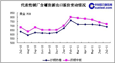 另外國內(nèi)重點鋼廠下調(diào)內(nèi)銷價格、三季度國際礦石協(xié)議價格下調(diào)、低價資源的多米諾效應(yīng)等因素也對出口造成不利影響。